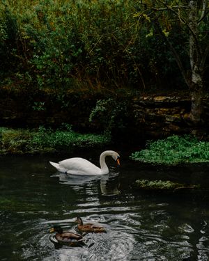 swan and ducks in water, english countryside, UK
